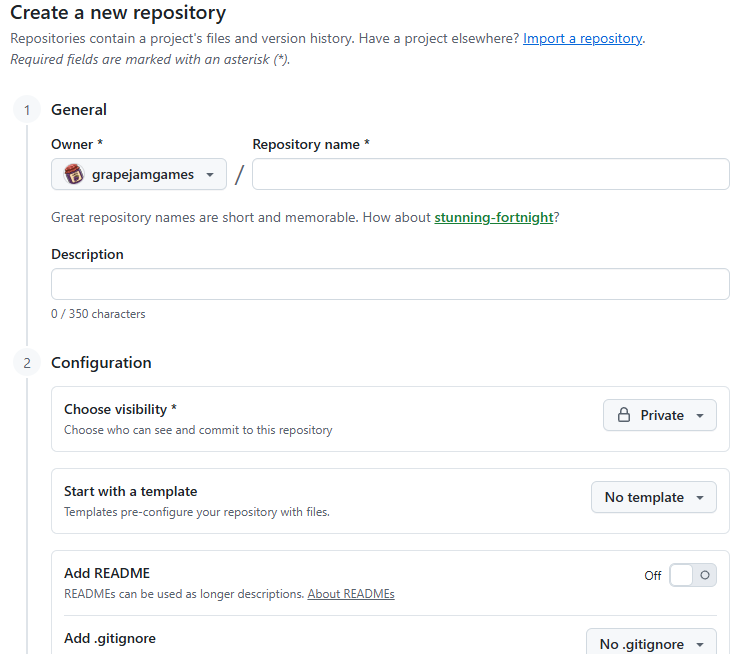 I saw no mention of LFS in my personal free Github account, which is what prompted me to make an organization. Setting up a repo required a few more clicks, as the platform has quite a few feature these days so the front page isn’t as clean as Diversion, but still not difficult.